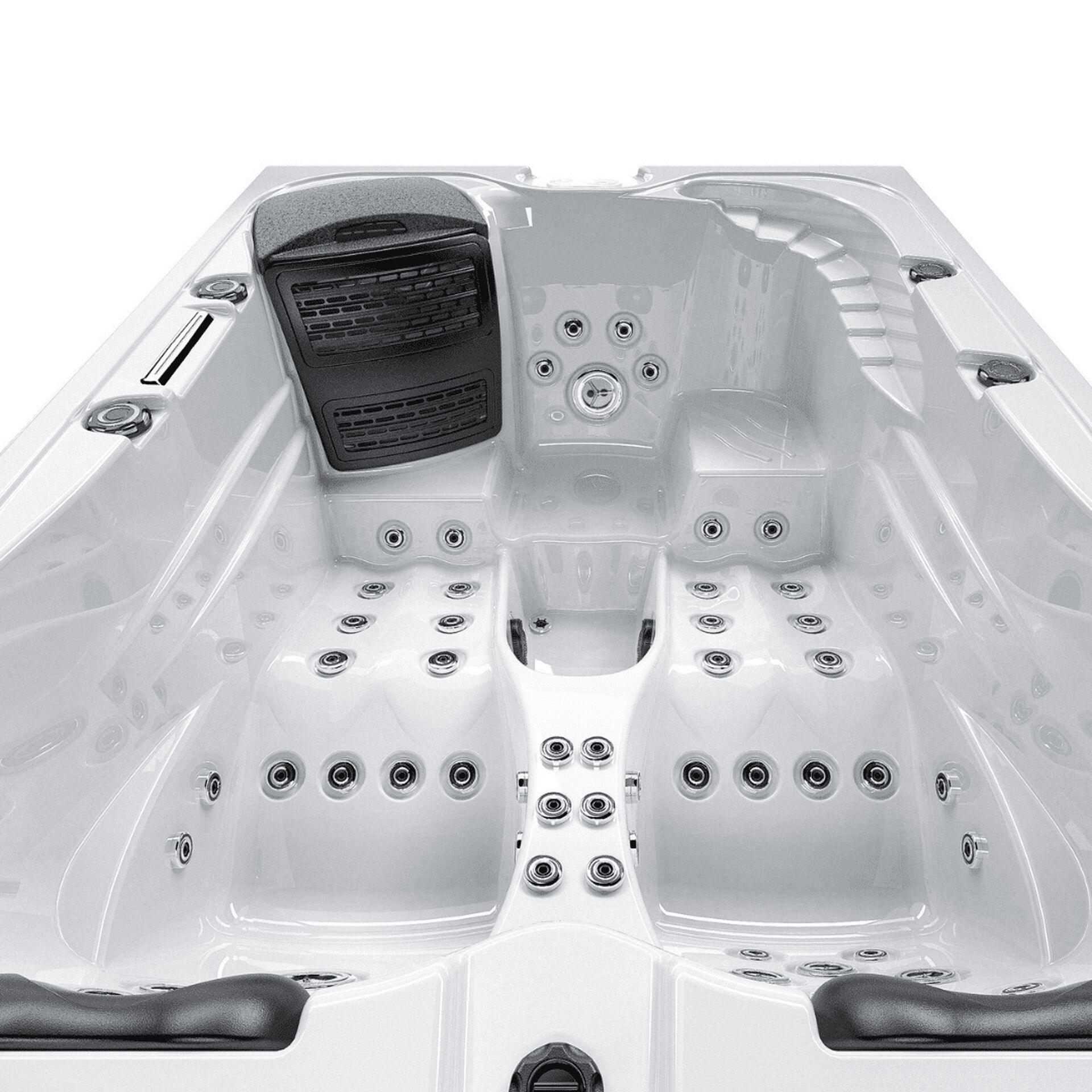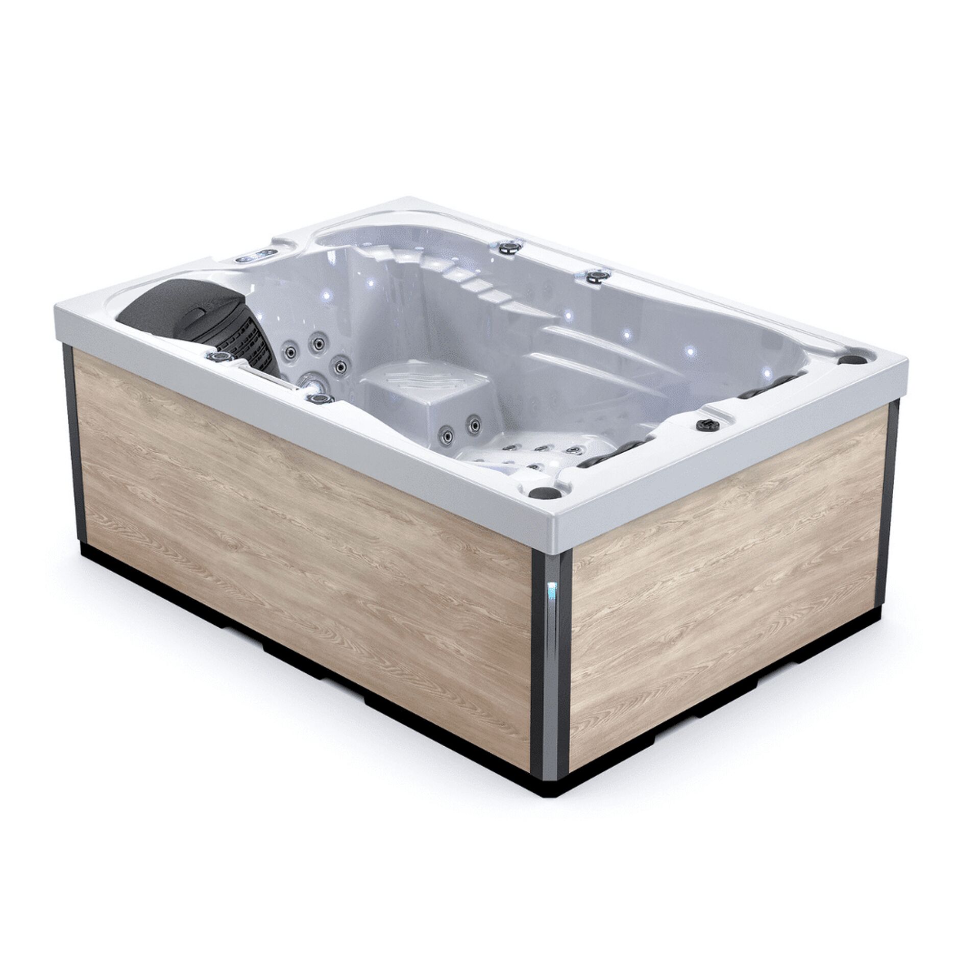 Les pompes utilisées sont de marque LX® Whirlpool, la référence mondiale pour l’équipement de filtration et de massage, avec 76Jets hydro en acier chromé et 10 jets d’air en acier chromé.