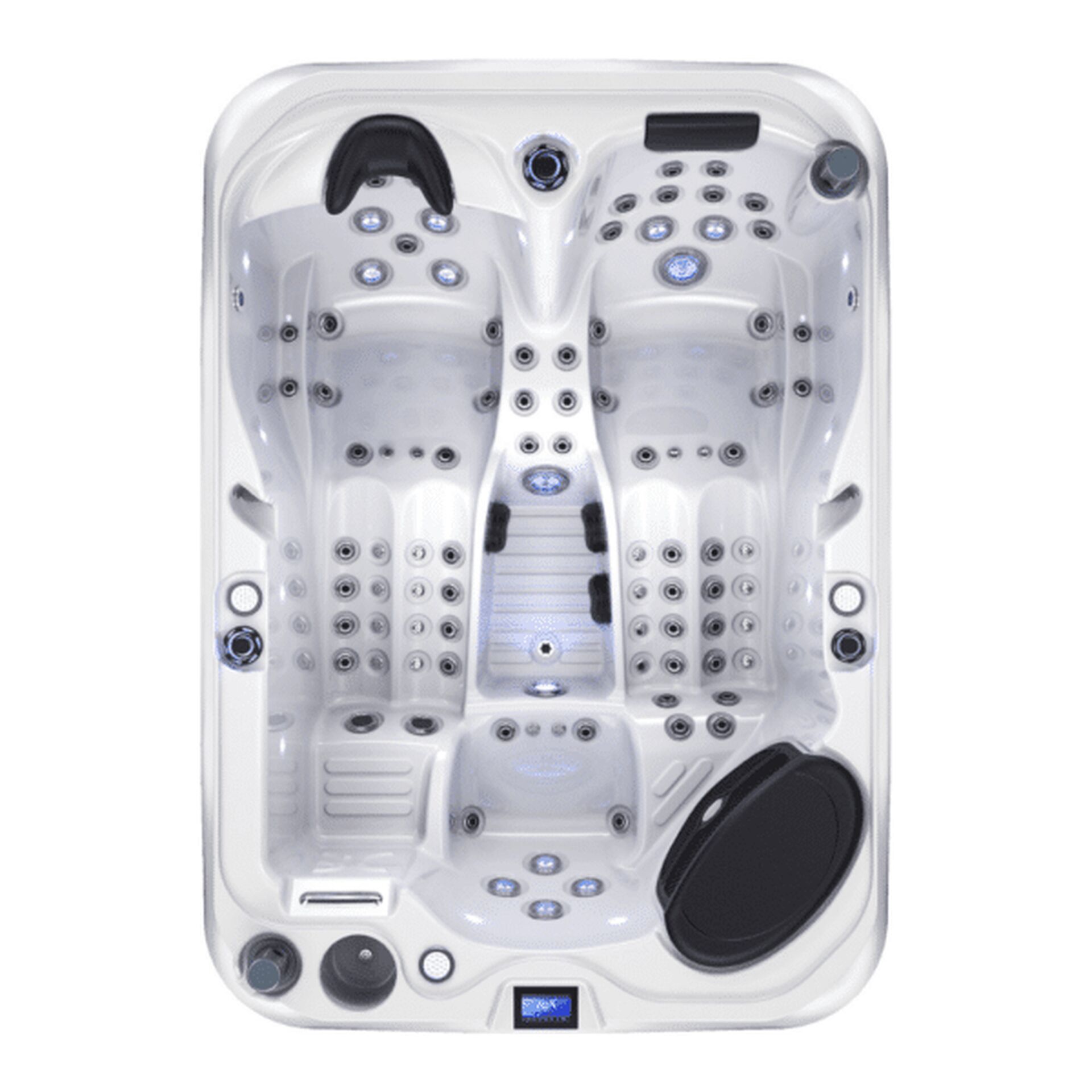 Les pompes utilisées sont de marque LX® Whirlpool, la référence mondiale pour l’équipement de filtration et de massage, avec 76 Jets hydro en acier chromé et 22 jets d’air en acier chromé.